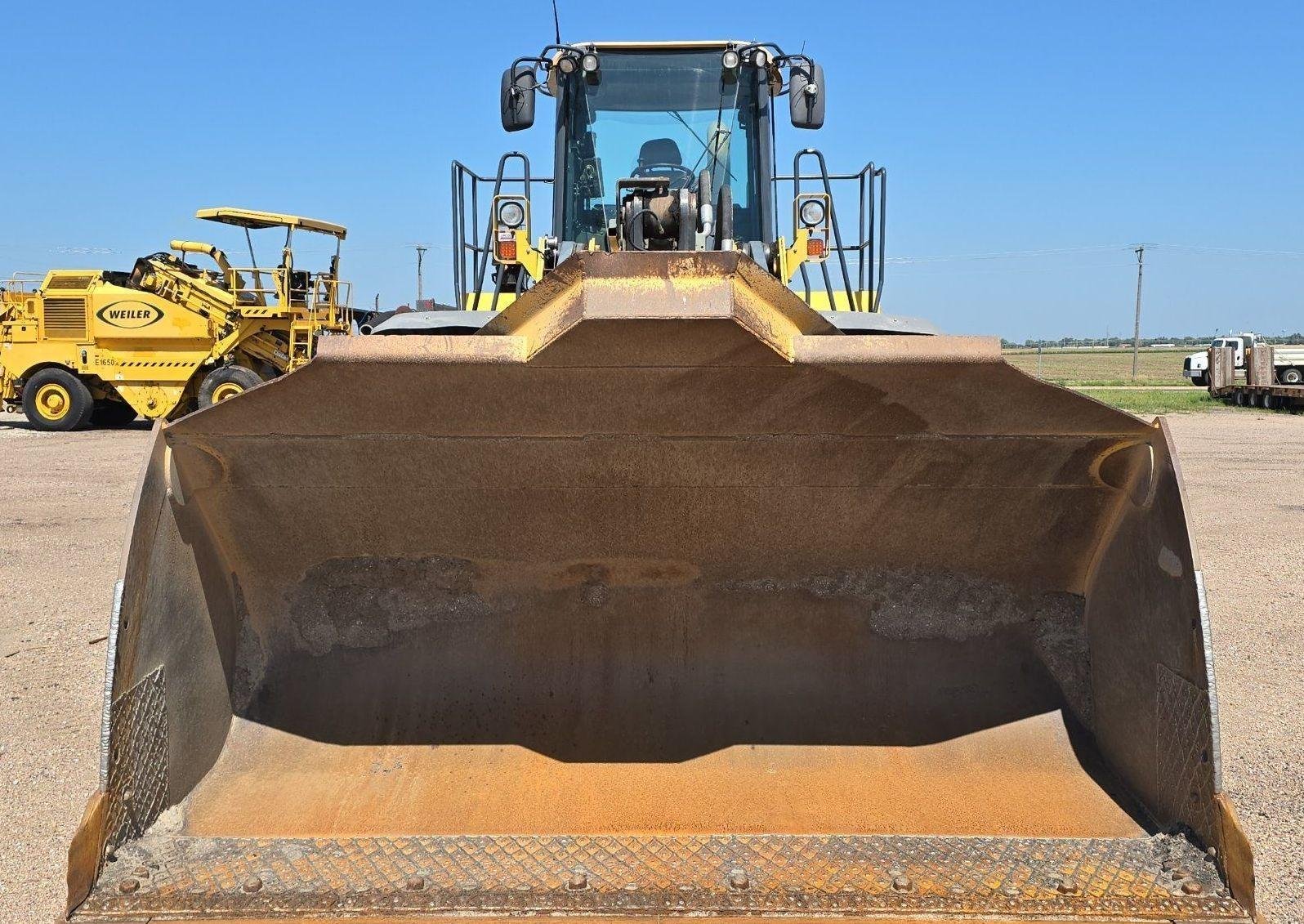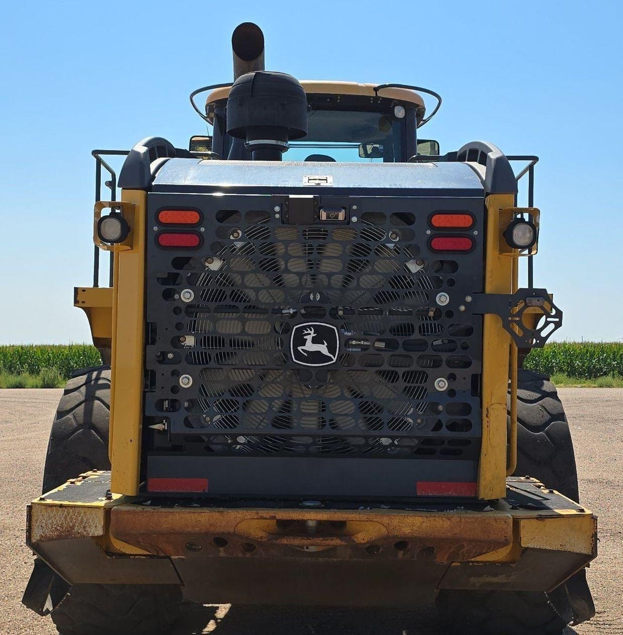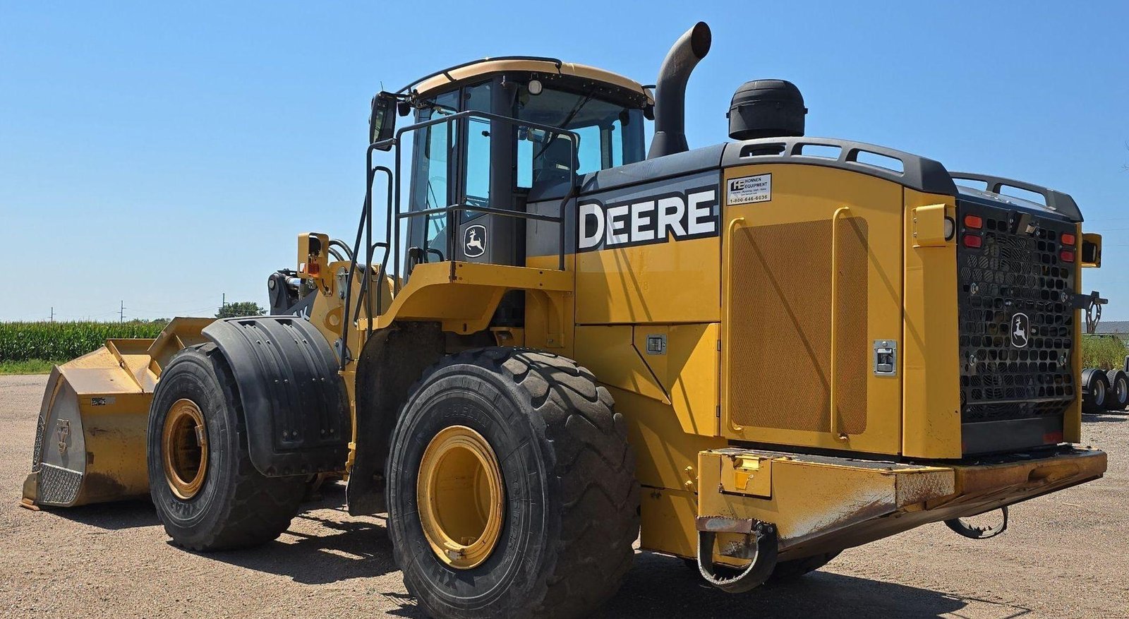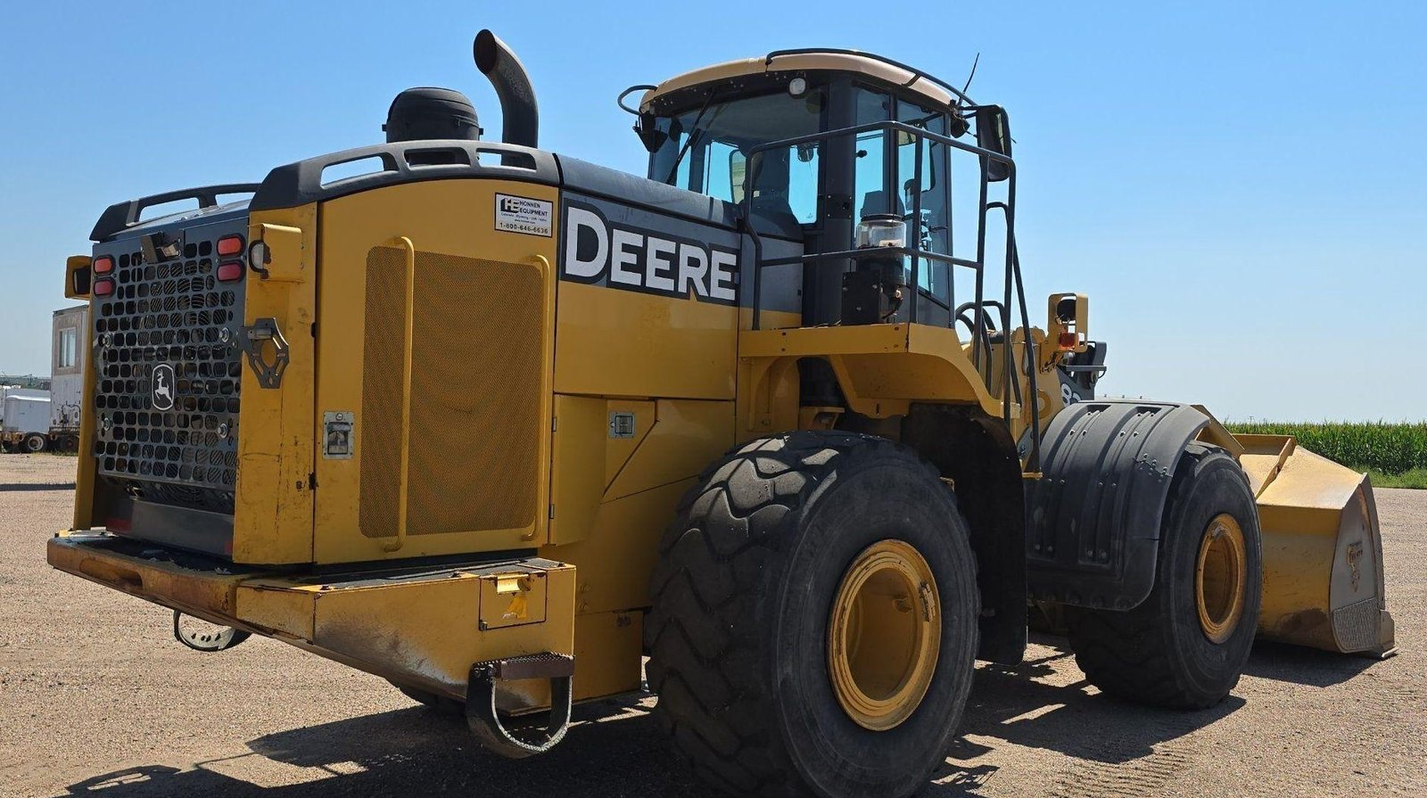 2014 John Deere 824K Wheel Loader — well-kept unit with 9,633 hours. Powered by a John Deere 6135HDW02 diesel (6-cyl). Equipped with powershift transmission, enclosed cab with A/C & heat, and a 6.5 cu.yd TRM bucket.