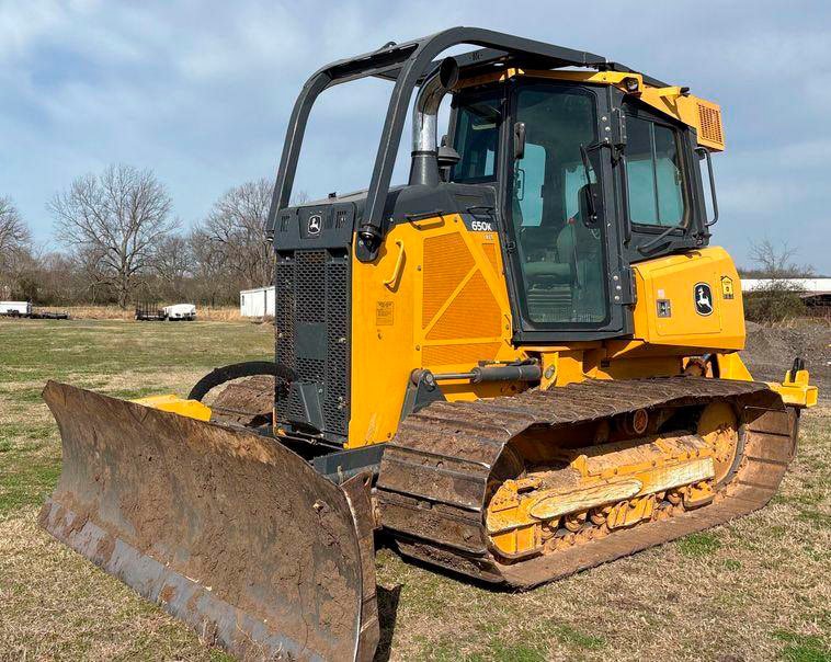 2019 John Deere 650K LGP Dozer — hydrostatic, enclosed cab with joystick steering; sweeps and 6-way blade; engine replaced ~1,940 hrs.