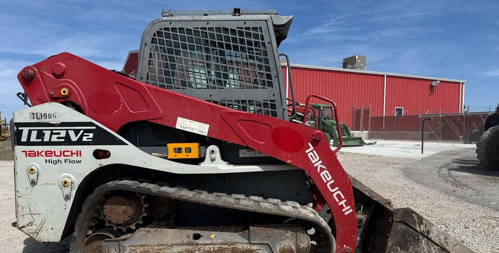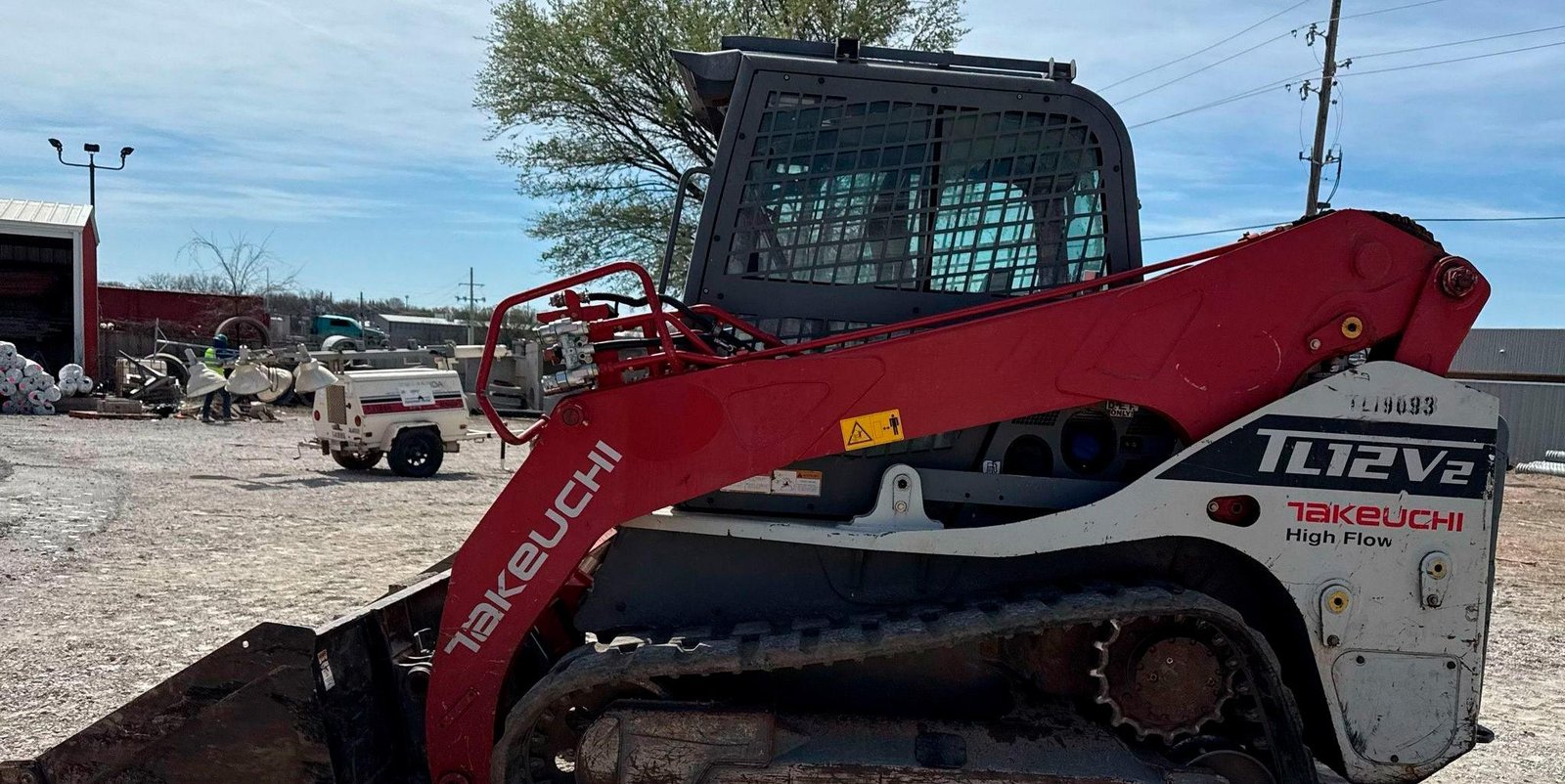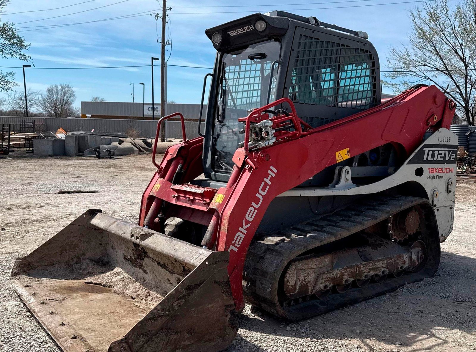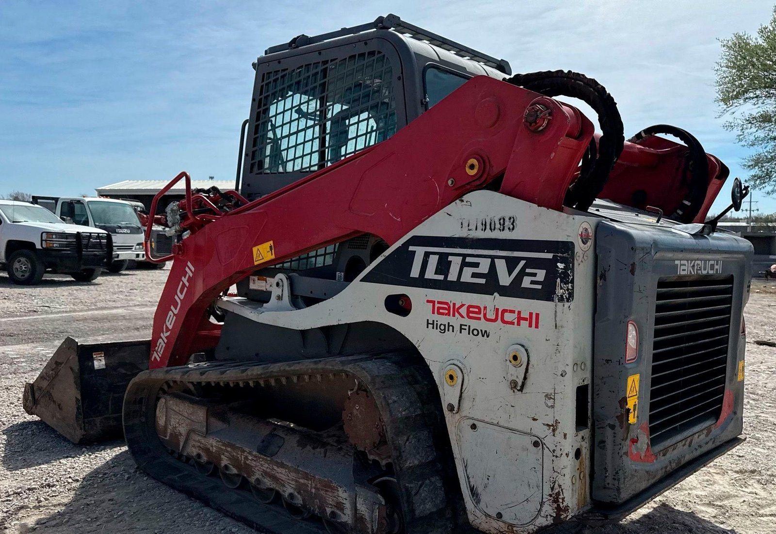 2019 Takeuchi TL12V-2 Tracked Skid Steer Loader — 3.8L Kubota diesel, two-speed, high-flow aux, manual coupler.