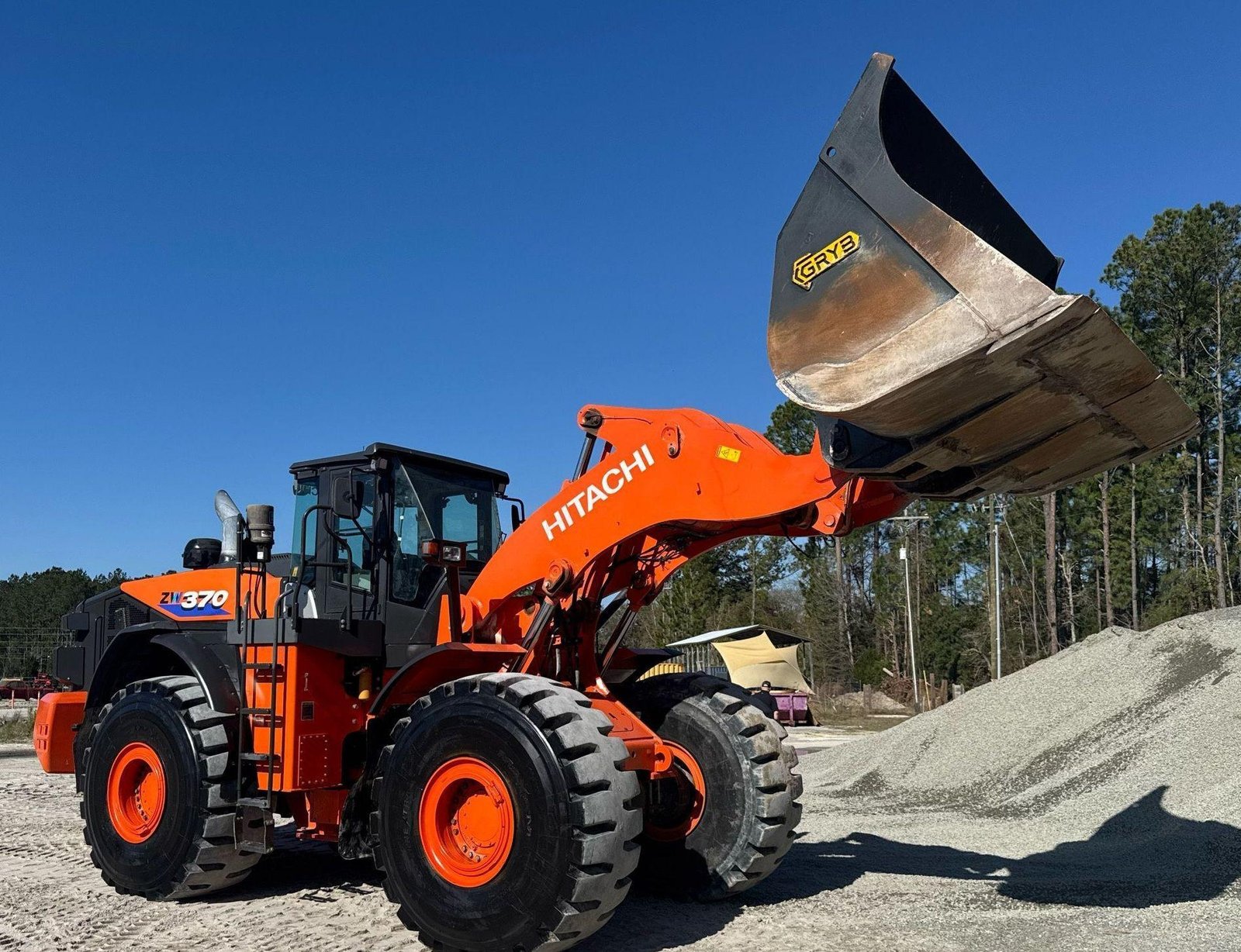 2020 Hitachi ZW370-6 Wheel Loader — Isuzu AQ-6MG1X 15.681L diesel, powershift, GRYB 140″ bucket, solid tires.