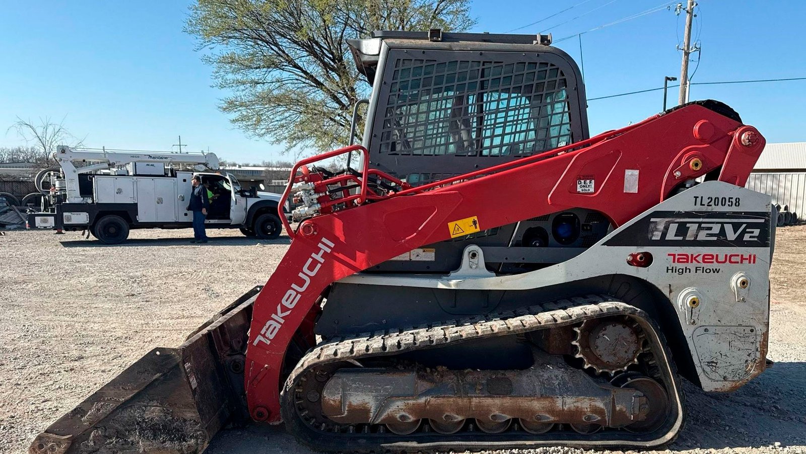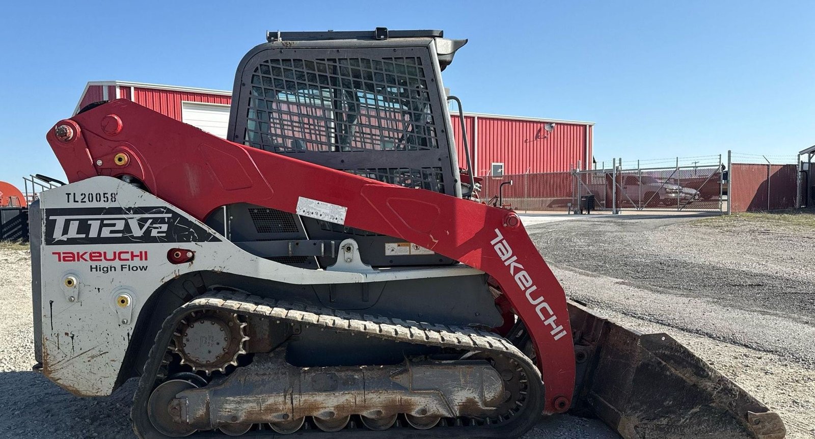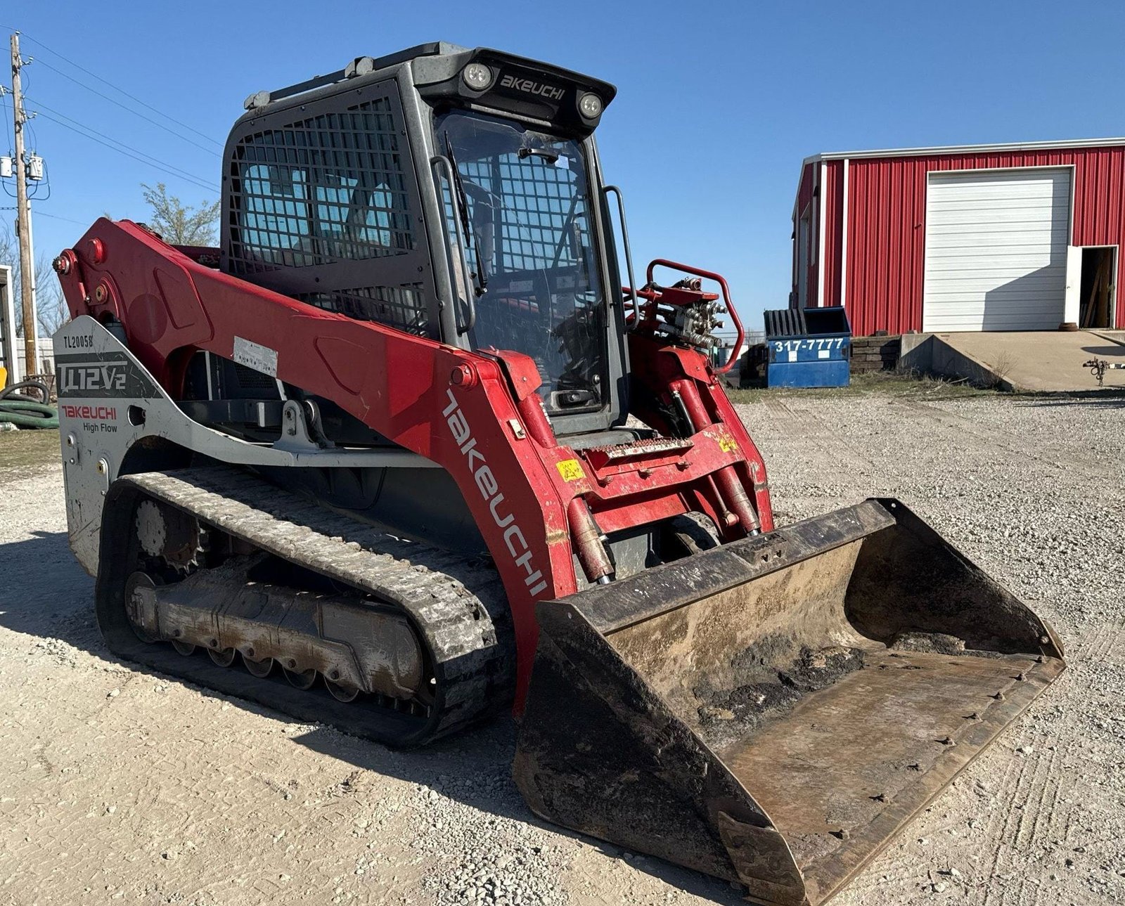 2020 Takeuchi TL12V-2 Tracked Skid Steer Loader — high-capacity vertical-lift loader with enclosed cab and hydraulic quick coupler.