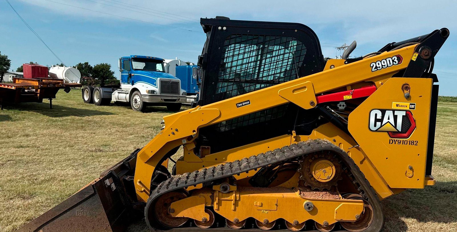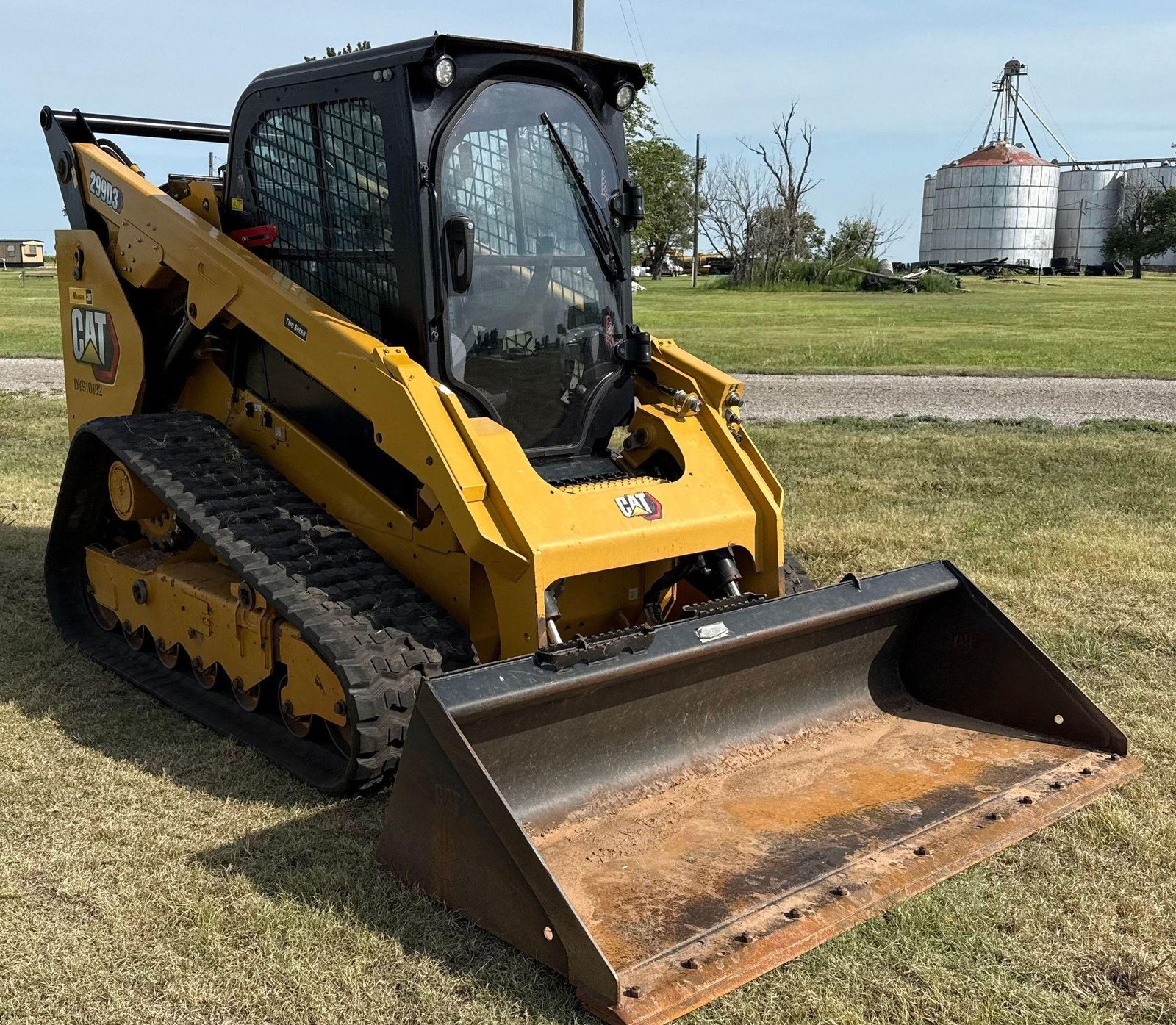 2023 Caterpillar 299D3 Tracked Skid Steer Loader — enclosed cab, hydraulic QC, Cat 86″ bucket, aux hydraulics/outlet.